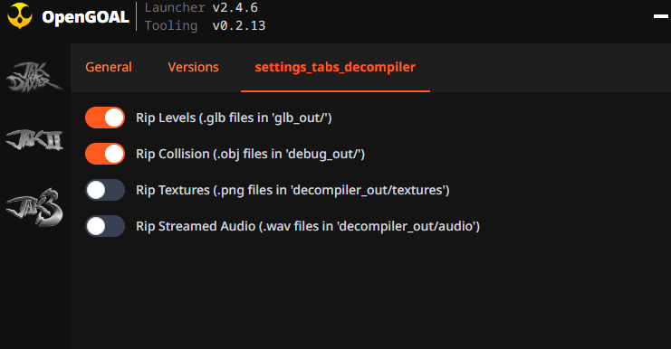 Well no more, not only does the extractor binary now support anything the normal decompiler binary does -- but the launcher now has settings to do all of this for you. Just enable what you want, and run the decompiler through Advanced on the respective game: