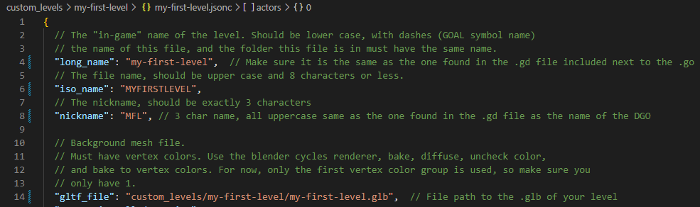 The .jsonc file, my-first-level.jsonc in my situation, has multiple purposes:
