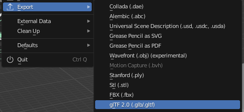 Go to File > Export > glTF 2.0 (.glb/gltf).