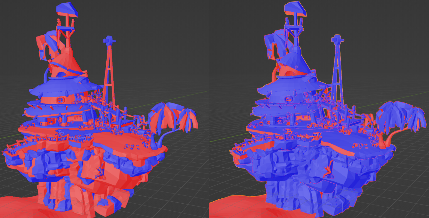 As you can see, my platform's normals are correctly set, but the imported level's normals are all over the place.