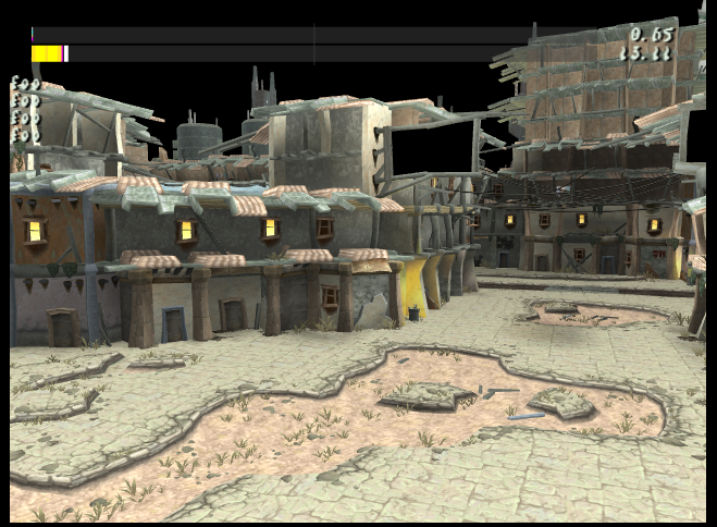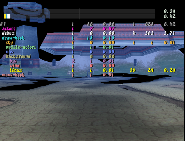 [2022-09-30] Time-of-day now allows for different weights for red green and blue. Here the ground is drawn with Jak 1's system, the building with Jak 2's