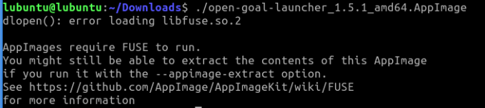 The Launcher is distributed as an AppImage, in recent distributions such as Ubuntu 22.04, you may see an error like the following: