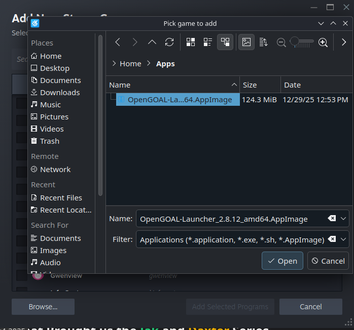 Similar to the previous section, you can manually install OpenGOAL on a SteamDeck